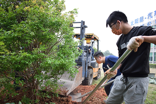 “樹坑要挖深一點(diǎn),草屑要鋪均勻,袋裝的肥土均勻下在底部,填土?xí)r要把樹扶正,土一定要壓實(shí)……”在有經(jīng)驗(yàn)的志愿者講解和指導(dǎo)下,平日里專注于產(chǎn)線的工人們,瞬間變成了一個(gè)個(gè)種樹能手。每個(gè)工序都一絲不茍,挖坑、施肥、填土、澆水,嚴(yán)謹(jǐn)?shù)轿弧km然揮汗如雨,但卻干勁十足。志愿者們這次栽種的是嘉寶果樹,由于樹苗較大較重,平時(shí)工作中的老伙計(jì)——叉車也出動(dòng)了。幾個(gè)小時(shí)后,仕誠公司的草坪上,又翻出了許多新土,也增添了一排整齊翠綠的果樹。迎著春日的暖陽,志愿者們在新種的果樹前留下了美麗瞬間。
