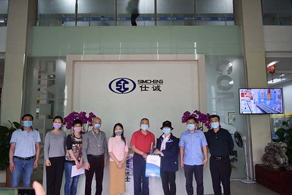 為落實(shí)疫情防控工作,全力服務(wù)保障企業(yè)順利復(fù)工復(fù)產(chǎn)。3月25日下午,南海區(qū)市場(chǎng)監(jiān)督管理局副局長(zhǎng)陳鑒一行9人到仕誠(chéng)公司調(diào)研,并為我司贈(zèng)送口罩。